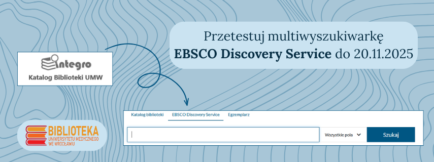 Multiwyszukiwarka EBSCO Discovery Service to nowe narzędzie wyszukiwawcze, które do dnia 20.11.2025 będzie testowane w katalogu Integro.